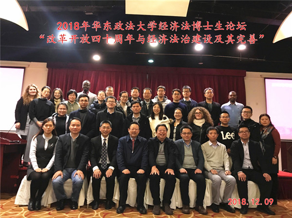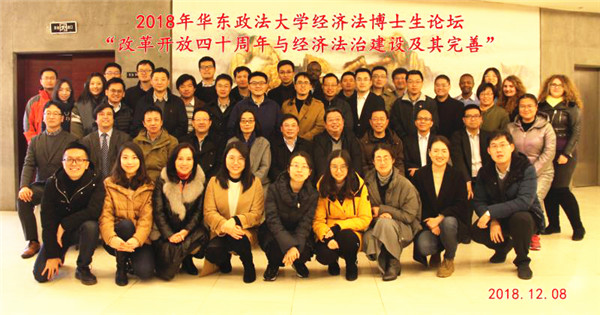 12月8日至9日,由我校经济法学院主办,上海市法学会经济法学研究会、上海市法学会商法学研究会、上海市法学会金融法研究会协办的首届华东政法大学经济法博士生论坛“改革开放四十周年与经济法治建设及其完善”在松江校区学苑宾馆举行。校党委副书记唐波教授,经济法学院党委书记张毅、经济法学院顾功耘教授出席论坛并致辞。经济法学科博士生导师、上海市司法局副局长罗培新教授,上海对外经贸大学法学院院长倪受彬教授,以及来自华东政法大学、上海财经大学、上海对外经贸大学等高校的60多位师生参与论坛。