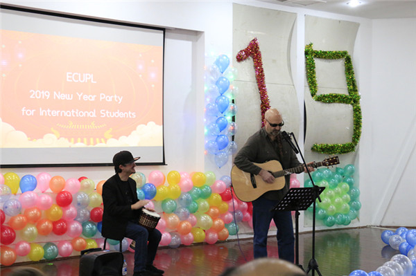 文艺表演环节异彩纷呈、形式多样。黄梅戏和相声让师生们体会到了中华传统文化艺术的优美和幽默;动感的说唱和街舞表演充满活力激情;外教们的吉他弹唱令人陶醉;华尔兹曼妙的舞姿仿佛带着大家走进了百花盛开的春天;诗朗诵《长江之歌》把联欢会带向了高潮,留学生在诗歌中赞美长江,赞美中国的锦绣河山,并期待在“一带一路”倡议下,成为各国与中国进行文化交流的使者。