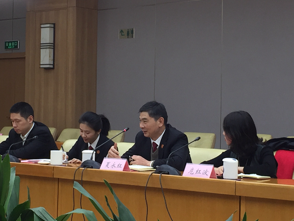 夏永红在认真听取实习助理对实习项目和二中院工作的改进建议基础上发表了讲话,勉励同学做一个有信仰、有智慧和有正义的法律人。