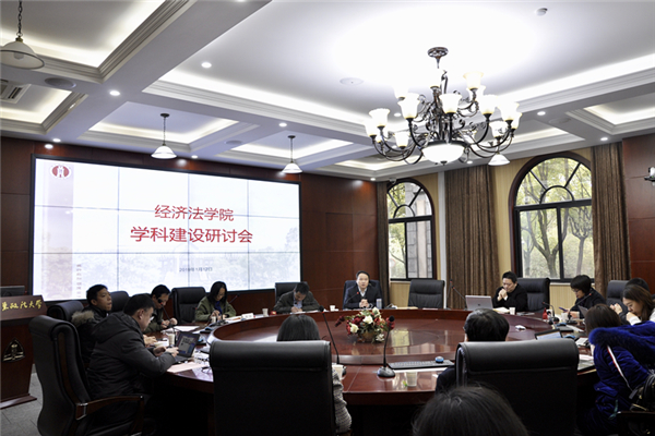 1月12日,经济法学院在松江校区崇法楼教师教学发展中心召开2019年度学科建设研讨会。校党委副书记唐波,副校长陈晶莹,发展规划处处长、文伯书院院长杨忠孝,经济法学院党委书记张毅、副院长(主持工作)钱玉林以及经济法学院全体教职工参加会议。会议由钱玉林主持。