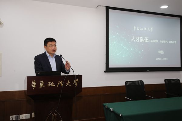 我校人事处处长韩强从人事制度改革背景与意义、师资队伍现状与分析、人才队伍建设取得的进展和存在的问题以及下一步主要改革方向等四个方面对我校人才队伍建设情况进行了全面介绍。