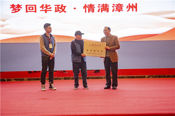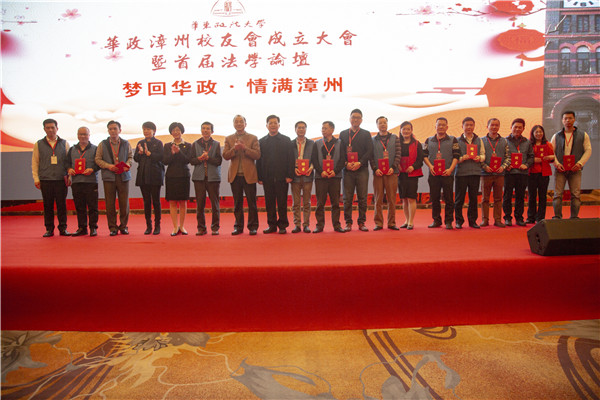 何勤华、应培礼、陈晶莹、王戎、赵云高为漳州校友会第一届理事和监事颁发聘书。