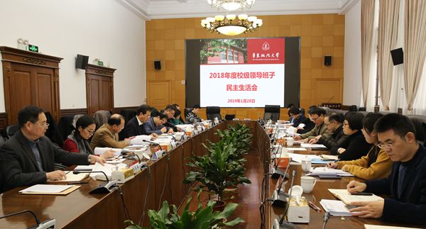 1月28日下午,2018年度校级领导班子民主生活会在长宁校区召开。市教卫工作党委系统单位2018年民主生活会督导组组长、上海电力学院原党委副书记李国荣,组员上海音乐学院作曲系、指挥系联合党总支书记邱惠柳,上海师范大学马克思主义学院党总支书记周理,上海工程技术大学党委组织员熊伟,市委组织部宣教科技干部处闻兆伟,市教卫工作党委组织干部处王宁寅到会指导。我校党委书记郭为禄,党委副书记、校长叶青,党委副书记、纪委书记应培礼,党委副书记、副校长闵辉,党委副书记唐波,副校长陈晶莹,党委常委、副校长张明军、周立志,党委常委曲玉梁、戴莹、虞潇浩、杨忠孝出席会议,纪委副书记、监察室主任李健列席会议。会议由郭为禄主持。