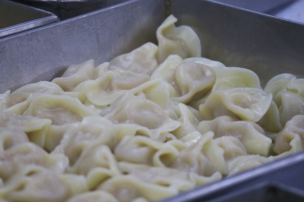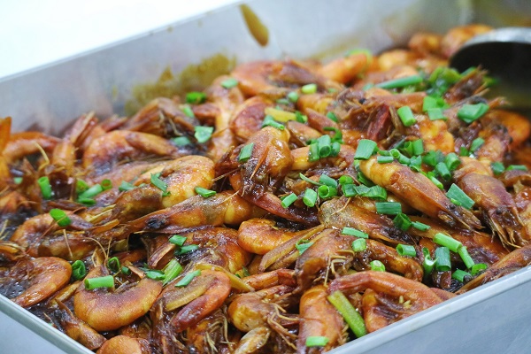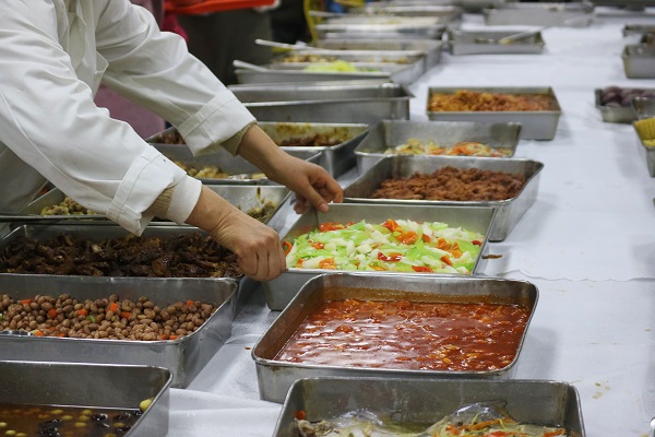 年夜饭是新春佳节必不可少的重头戏,学校食堂工作人员为师生准备了一顿丰盛的晚宴,精心烹制好的冷、热菜肴和点心陈列在长条桌上,色香味俱全。