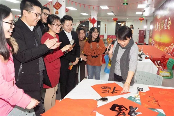 在现场特设的传统文化体验区,拉一段二胡,泡一壶浓茶,剪一纸窗花,贴一个福字,老师与同学纷纷驻足体验中国传统文化的魅力,年味浓郁,喜气洋洋。