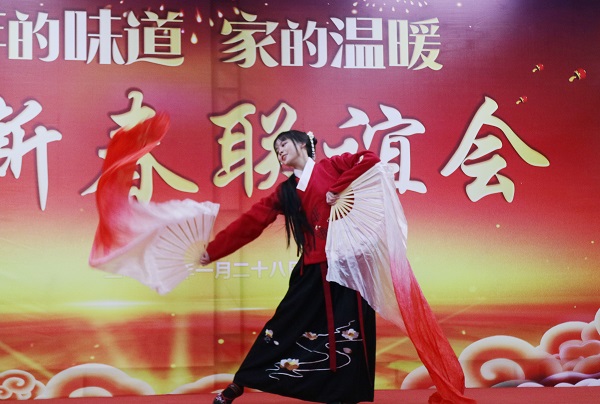 举办迎新春联谊会已经成为我校每年慰问留校学生的传统活动。当晚六点,河西食堂焕然一新:卸下旧容迎新妆,精美拉花处处可见,红色背景板更添喜庆,让这里充满着浓浓的年味和节日的喜庆。