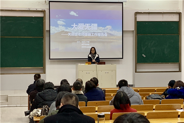 为了弘扬教师师德,激励广大教师做好教书育人工作,2月20日下午,由党委教师工作部、经济法学院、刑事司法学院联合举办的“大爱无疆——关颖雄老师援疆工作报告会”在松江校区杨咏曼楼举行。校党委副书记唐波,党委教师工作部副部长(主持工作)赵庆寺、经济法学院党委书记张毅、刑事司法学院党委书记王永全出席会议并讲话。原校党委书记杜志淳,教师工作部、经济法学院和刑事司法学院全体教职工参会。会议由张毅主持。