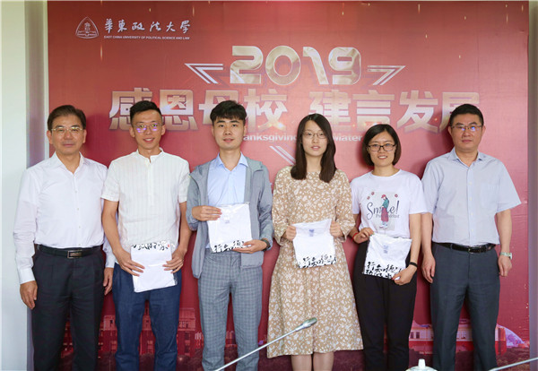 毕业生代表畅谈了在华政学习、生活的感受,充分肯定了学校在发展定位、专业特色、实践平台、事务管理、服务保障等方面所作出的富有成效的工作和努力,表达了对学校深切的感恩之情。同时,他们从各自体验出发,在加强学风建设、基础设施建设、专业复合、学术科研、国际交流与合作等方面的问题提出了意见和建议。