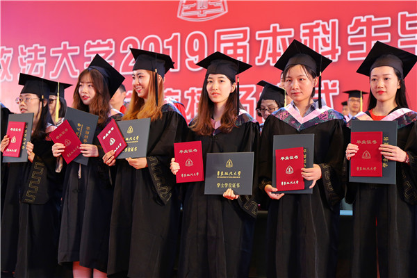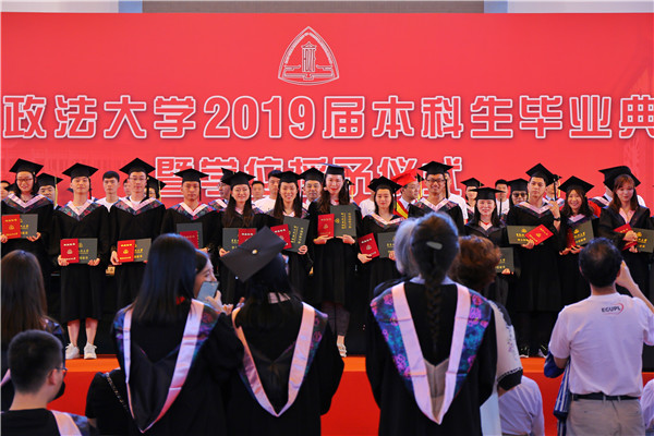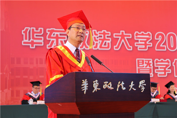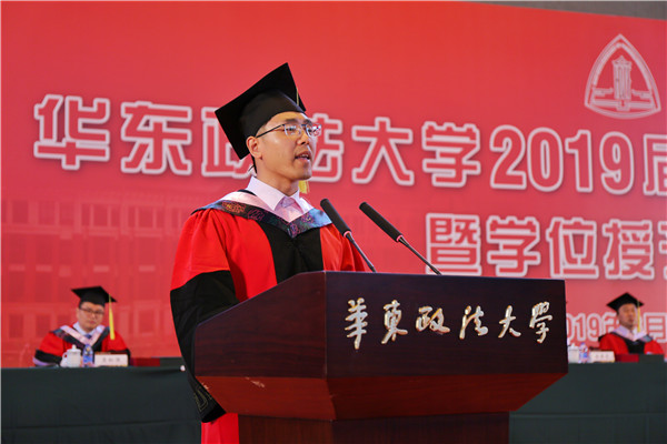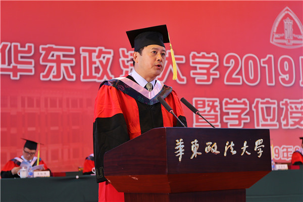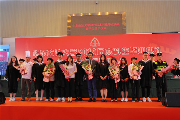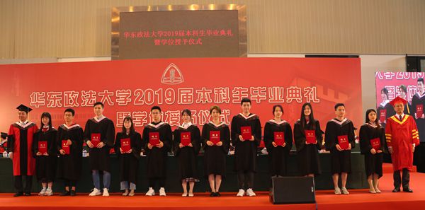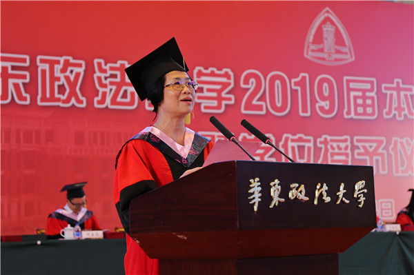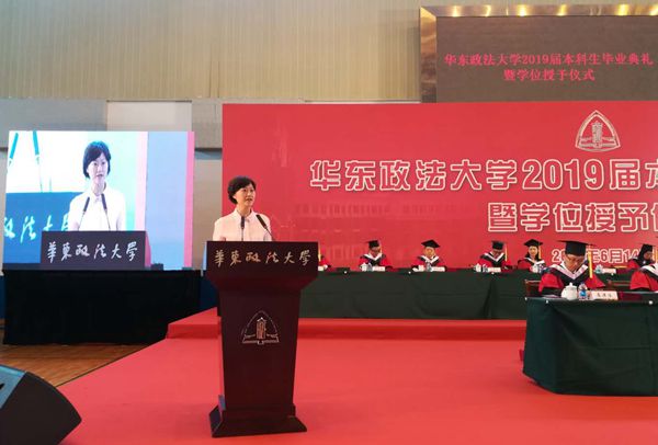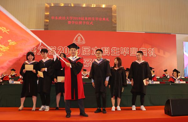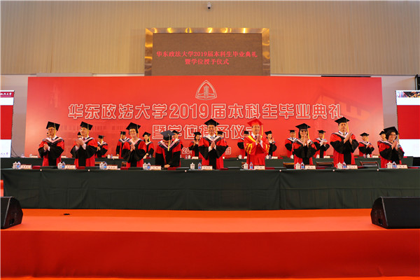 陈晶莹、周立志分别宣读授予学士学位决定和2019届“上海市普通高等学校优秀毕业生”“华东政法大学优秀毕业生”通知。