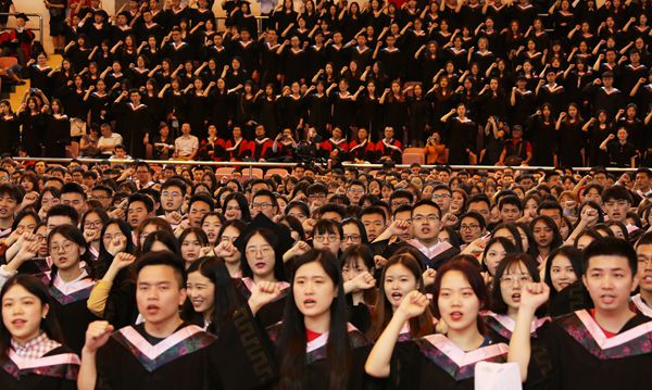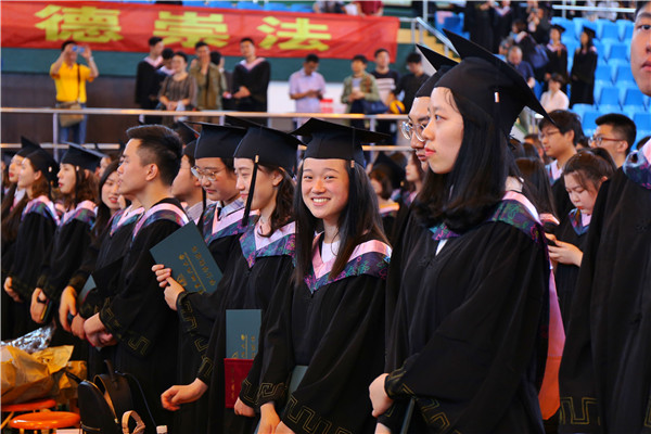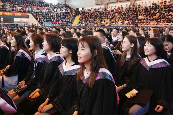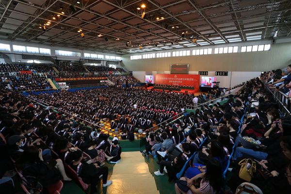 6月14日上午,我校2019届本科生毕业典礼暨学位授予仪式在松江校区富田体育馆举行。校党委书记郭为禄,党委副书记、校长叶青,党委副书记、副校长闵辉,党委副书记唐波,副校长陈晶莹,党委常委、副校长周立志,党委常委曲玉梁、戴莹、虞潇浩,校友代表、杭州互联网法院院长杜前,以及学院和职能部门负责人、教师代表、家长代表和2500余名本科毕业生出席典礼。典礼由闵辉主持。