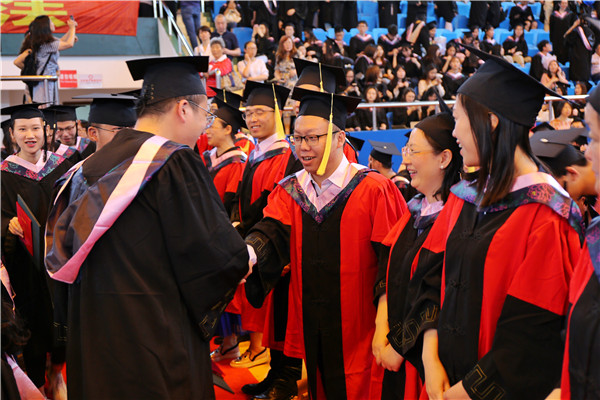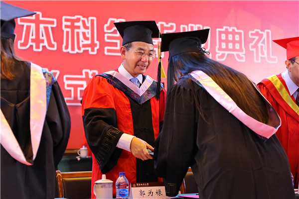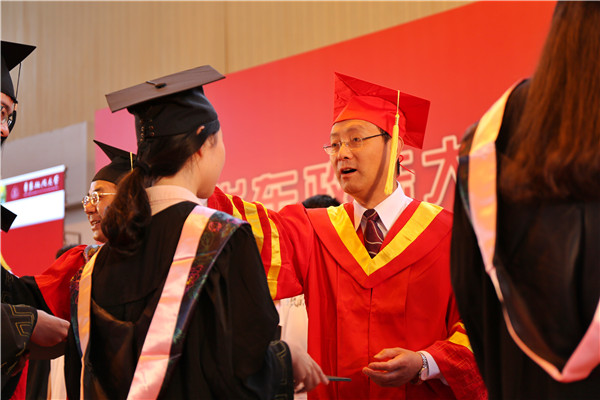 叶青激励毕业生背上青春行囊,努力奋斗,并指出华政的“新鲜事”将对大家永久可见,大家的新成绩也将被母校骄傲地“晒”在“朋友圈”,他祝毕业生前程似锦、一切平安。