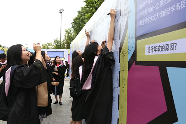 典礼开始前,与会人员观看了毕业季特制短片《遇见华政》和毕业原创歌曲《Young And Free》MV。学校在场外制作毕业展板,以“华政年度关键词”为题,征集了毕业生在华政“最难忘”“最怀念”“我想说”等话题内容,让毕业生“上墙”抒发毕业感想,分享点滴感动。学校在现场还特别开通了网络直播平台、微信墙,通过华东政法大学官方微信公众号直播毕业典礼,让未能亲临现场的家长、朋友可以第一时间分享毕业生的激动与喜悦。