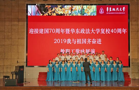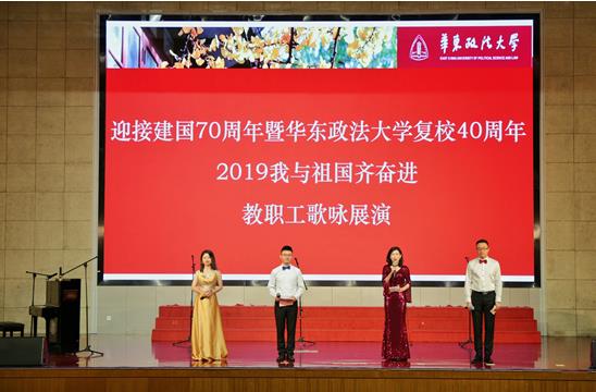 为纪念建国70周年、建党98周年暨复校40周年,校工会6月12日在松江校区缘法厅举办“2019我与祖国齐奋进”华东政法大学教工歌咏展演活动,用歌声歌颂过往,用歌声唱响未来。