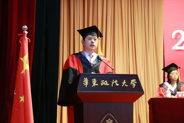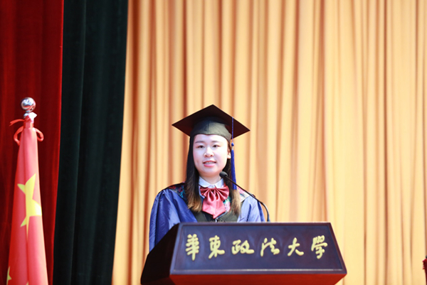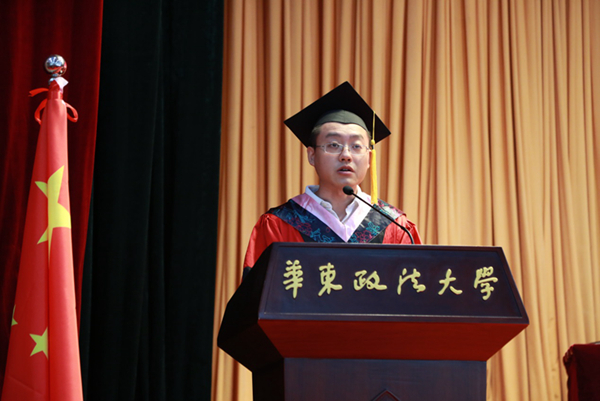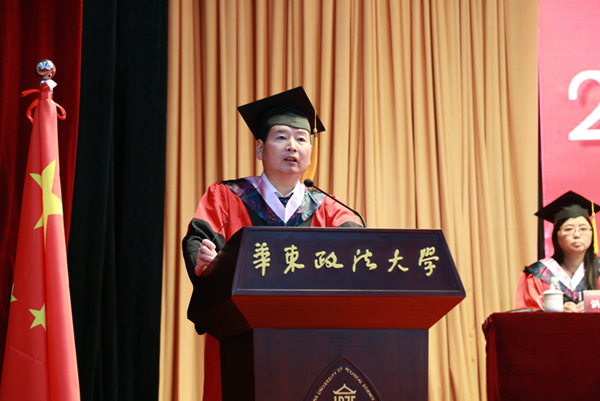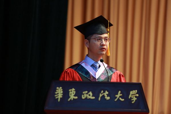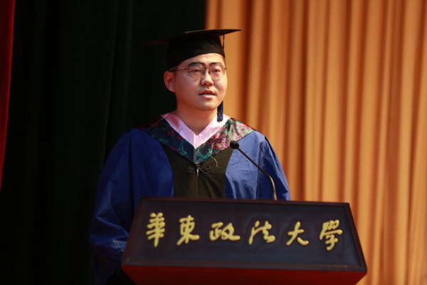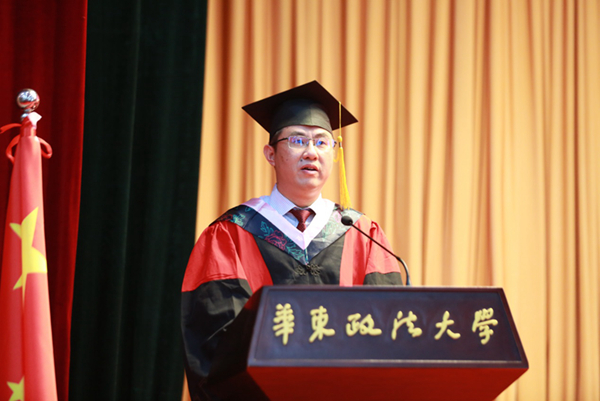 国际金融法律学院丁勇、社会发展学院李峰代表全体导师向毕业生表示热烈祝贺。丁勇教导毕业生不要忘记法律人推动法治进步的责任,要为华政法律人贴上研究型专家的职场标签,做研究型的职场法律人。李峰叮嘱同学们将自己的选择与国家和民族的需要建立起联系,在服务社会、服务他人时实现自我,不负青春时光。