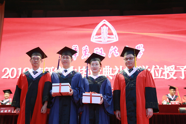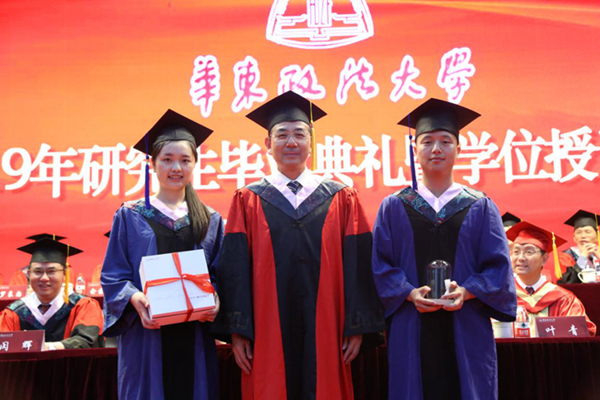 唐波、周立志宣读《关于授予2019届“上海市高等学校优秀毕业生”荣誉称号的通知》和《关于授予“华东政法大学2019届优秀毕业生”荣誉称号的通知》。
