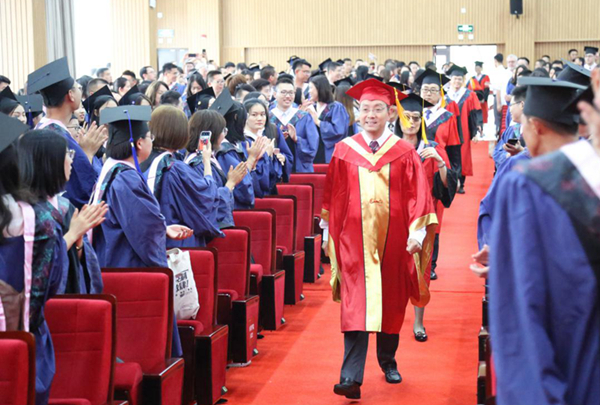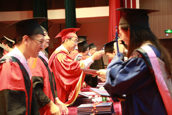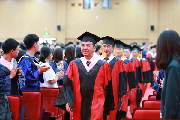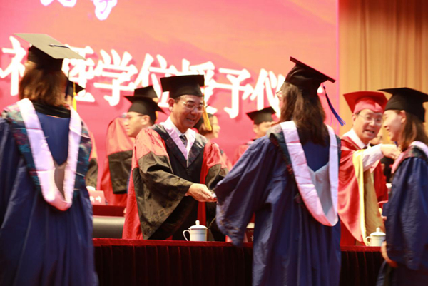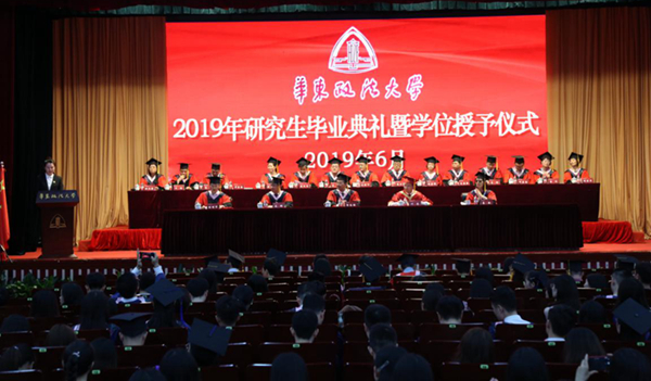 6月20日,我校2019年研究生毕业典礼暨博士、硕士学位授予仪式在长宁校区大礼堂举行。校党委书记郭为禄,校党委副书记、校长叶青,校党委副书记、副校长闵辉,校党委副书记唐波,副校长陈晶莹、张明军、周立志,校党委常委虞潇浩、杨忠孝,各职能部门负责人、各学院领导、导师代表,研究生辅导员、研究生秘书,研究生教育院全体工作人员以及2019届全体毕业研究生出席。张明军主持典礼。