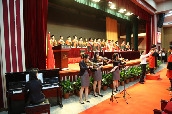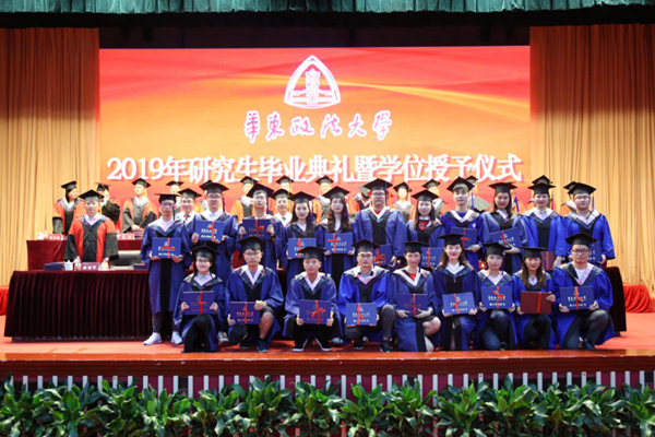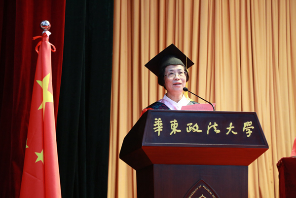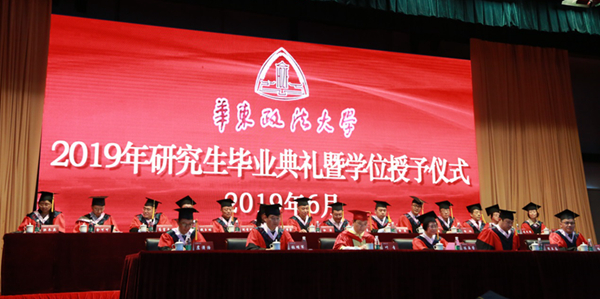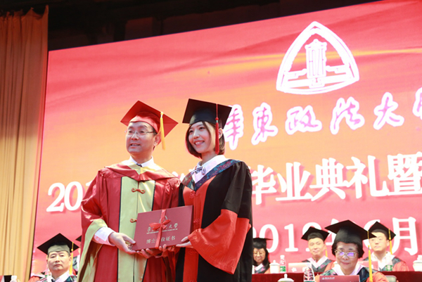 毕业典礼仪式在庄严的国歌声中拉开序幕。闵辉、陈晶莹分别宣读《华东政法大学关于授予闫婷等71名同学博士学位的决定》和《华东政法大学关于授予张萧萧等1483名同学硕士学位的决定》。
