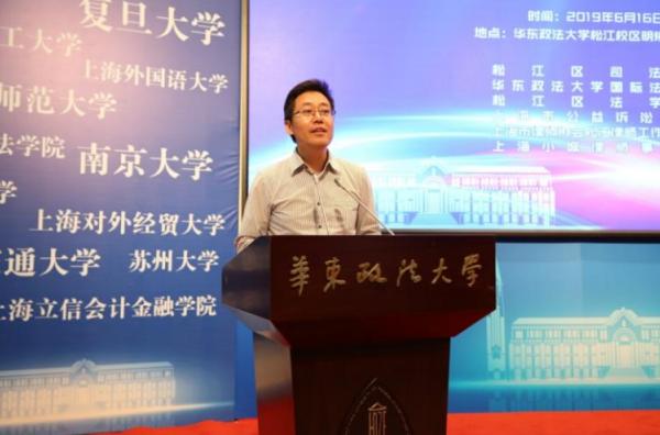 6月16日,第五届“小城杯”公益之星创意诉讼大赛决赛在松江校区尚法厅举行。校长叶青出席活动并致辞。本届大赛由松江区司法局、我校国际法学院、松江区法学会、上海市公益诉讼中心、上海市律师协会松江律师工作委员会共同举办,上海小城律师事务所出资赞助。松江区人民检察院副检察长苏正洪,上海市律师协会副会长曹志龙,松江区司法局局长莫桂兴,松江区融媒体中心总编辑周样波,我校教务处副处长、上海市公益诉讼研究中心主任李翔,传播学院院长范玉吉,国际法学院副教授张虎,上海市律协松江律师工作委员会主任傅伟军,上海小城律师事务所主任吴辰等9人担任决赛评委。上海市人民检察院第八检察部检察官孟江川子,松江区人民检察院第五检察部主任王刚,松江区人民检察院第五检察部副主任赵健兵,国际法学院党委书记寿新宝、副书记侯玉芹等出席活动。