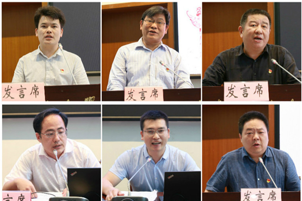 交流发言环节,市教卫工作党委系统优秀共产党员、传播学院教师孙祥飞以“永远做在路上的追梦人”为题,表示党员教师要引领好学生,将小我融入讲好依法治国的故事,融入学校新征程。市教卫工作党委系统优秀党务工作者、高校党组织“攀登计划”标杆院系创建单位、政治学与公共管理学院党委书记曹都国以“守正初心、爱岗敬业、勇担责任,铸就学院坚强政治核心”为题,分享了做好党务工作的体会以及示范创建的规划。市教卫工作党委系统先进基层党组织、马克思主义学院党总支书记陈大伟从抓好班子思想、作风建设,持续推进党建规范化、制度化、常态化,以党建引领、保障内涵建设三个方面,介绍了学院党建工作。教育部首批全国党建工作样板党支部培育创建单位、市教卫工作党委系统先进基层党组织、国际法学院国际公法教研室党支部书记张磊回顾了党建工作传统,总结了高举党旗、扎根讲台、服务国家的经验,表示将从完善党员教育制度等方面加强支部建设。市教卫工作党委系统先进基层党组织、高校党组织“攀登计划”样板党支部创建单位、经济法学院教工第一党支部书记任超展示了落实“双带头人”制度、探索课程思政新思路等建设成果,以及以党建促进教学、科研与社会服务的支部建设方案。