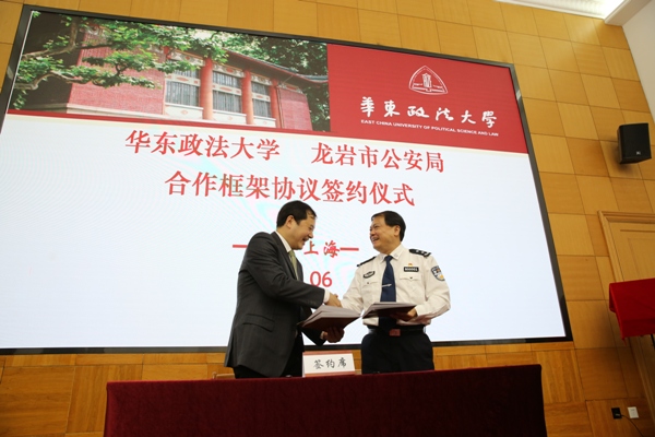 6月21日,我校与龙岩市公安局在长宁校区举行合作框架协议签约仪式,龙岩市副市长、市委政法委副书记、市公安局党委书记、公安局长、督察长张斌,我校副校长周立志出席会议并代表双方签署合作协议,社会协同合作处处长、校团委书记陈赛金主持签约仪式。