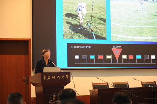 郭蓓作了“国际射箭运动发展的历史与文化”主题报告,介绍了国际射箭运动的古今发展概况、中国现代射箭运动的发展及国际射箭运动的改革;崔乐泉作了“西周射礼的考古学观察”主题报告,以大射礼、燕射礼与宾射礼为例,展示了古代射礼在西周时期的发展盛况;罗时铭作了“从射术到射艺:基于中国射箭历史研究的文化考察”主题报告,介绍了中国射箭活动的历史沿革——从为生存而射,到为礼教、人才选拔而射,感慨作为中国优秀体育代表的射艺文化自明代后被历史淹没,号召并期望中华射艺能够在全球化背景下走出属于自己的道路,早日复兴。