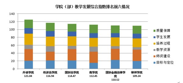 本次统计工作对原《华东政法大学本科生教学质量评价指标》(以下简称评价指标)进行了修订,在继续围绕审核评估6个审核项目开展的基础上,将原评价指标当中一些难以量化的指标加以修订和优化,形成了29条三级指标。此次评分工作坚持公平、公开、公正的原则,通过各学院(部)提供相应的观测点和评价标准支撑材料,质管办在认真核对各项支撑材料及数据后,对各项指标进行评分,并对学院(部)各项指标得分进行数据汇总,形成2018年度学院(部)本科教学发展指数。