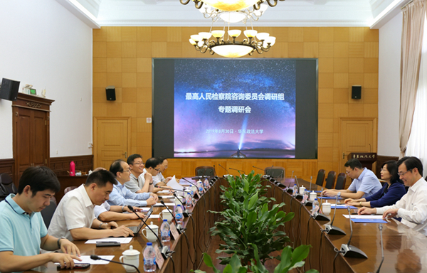 8月30日下午,最高人民检察院咨询委员会调研组到长宁校区进行公益诉讼专题调研。调研组由最高人民检察院原副部级专职委员陈连福,吉林省人民检察院原党组书记、检察长张金锁,江西省人民检察院原党组书记、检察长刘铁流,宁夏自治区人民检察院原党组书记、检察长李定达等四位最高人民检察院咨询委员会委员组成,上海市人民检察院党组成员、副检察长许祥云等陪同调研。我校校长叶青,华东检察研究院、公益诉讼研究中心相关专家教授参加调研座谈。调研会由叶青主持。