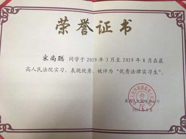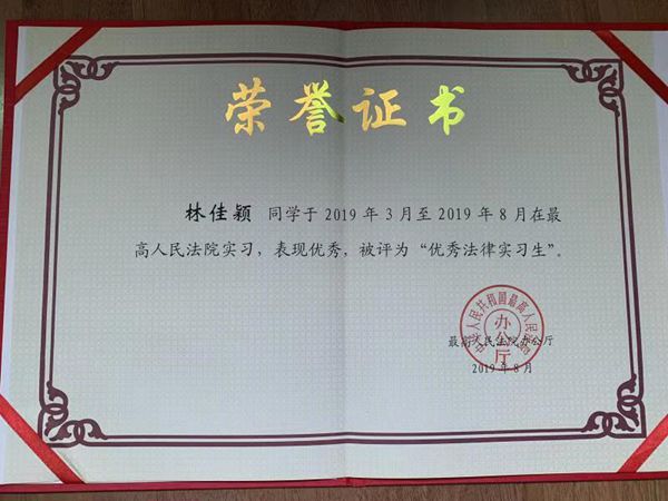 2018年12月,最高人民法院院启动第七批法律实习生的遴选工作,从国内30余所高校中选拔了50名法律实习生。我校硕士研究生冯硕、林佳颖,本科生宋尚聪同学经过层层选拔,成功入选,分别进入民四庭、审管办和监察局实习。在实习导师的指导下,三位同学认真负责、积极出色地完成了各项工作,得到了法院领导和带教老师的好评。