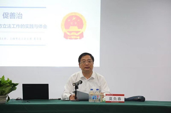 莫负春以《上海市生活垃圾管理条例》立法为例,从条例立法的背景、立法原则、立法过程及未来发展等角度,详细解读了上海市生活垃圾管理条例中所蕴含的立法精神。他指出,上海市在响应社会需求、充分研判当前社会民生现状的前提下,适时启动立法,努力提高制度供给的及时性,充分体现了立法科学和立法民主。同时,本次条例的出台细化了生活垃圾分类标准,清晰划分了垃圾分类工作中政府组织和社会组织的具体责任,强化了全社会的参与和监督,具有极为深远的示范意义。莫负春强调,立法工作是一项政治性、策略性、专业性、实践性都很强的工作,做好新时代地方立法工作要有一支高素质干部队伍和人才队伍支撑。