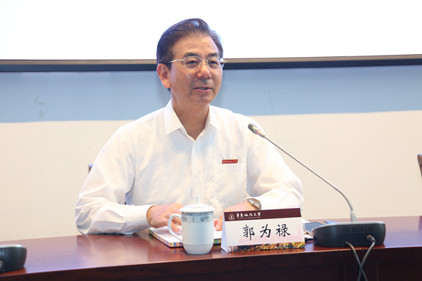 郭为禄代表学校、全校教师、全体学生对新入职教职工的到来表示诚挚欢迎,并感谢大家选择了华东政法大学。他围绕 “我是谁”“在哪里”“往哪里去”这三个问题对新进教职工提出了相关要求。
