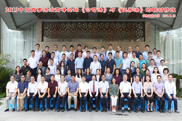 近日,由中国法学会商法学研究会、上海市法学会商法学研究会,我校经济法律研究院、经济法学院主办,股权法律实务研究中心协办的“2019中国商事法治高峰论坛:《公司法》与《证券法》的联动修改”在上海举行。来自北京大学、清华大学、中国人民大学、上海财经大学等30余家科研院所,以及上海市司法局等实务部门的80余位专家学者参加会议。