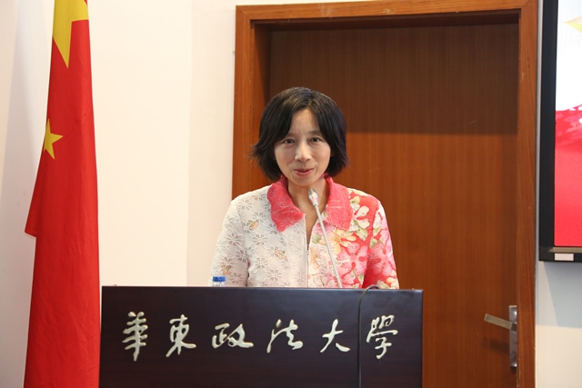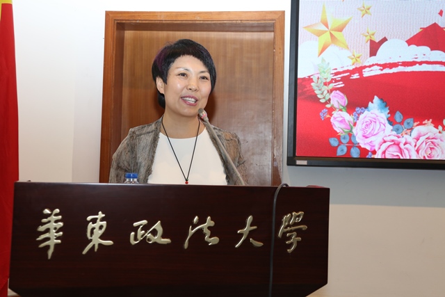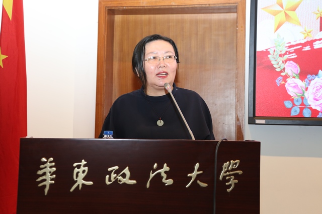 郭为禄代表华政全体师生对上海市三八红旗手走进高校思政课堂首场宣讲会的成功举办表示祝贺,并欢迎上海市各行业妇女杰出代表相聚华政,分享经验、交流情感、相互学习。他对我校的思政课教育改革提出了两点目标,一是要在学科点上冲击马克思主义学科博士点,二是让华政的马克思主义教育真正成为一种示范,实现课上课下结合、网上网下结合、校内校外教育资源全方位的德育大格局。他表示,思政课教育不是飘在天上的教条,而是脚踏实地的践行,知识教育是基础,信仰教育才是目标所在,要善于利用身边的人、身边的事引导学生思考理想、责任、人生和信念。他还呼吁在座每一位师生都以三八红旗手为榜样,坚守信念、执着梦想、努力奋斗、甘于奉献,为创造自己的精彩人生,为实现中华民族的伟大复兴作出积极贡献。