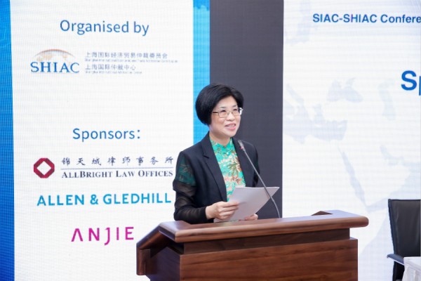 陈晶莹为签约仪式作特别致辞,她感谢上海国际仲裁中心与新加坡国际仲裁中心对我校长期以来的支持和帮助。陈晶莹表示,我校同时与上海国际仲裁中心、新加坡国际仲裁中心签约并建立深度合作关系,是践行“开门办学、开放办学、创新办学”理念的又一突破性进展。学校历来重视国际商事仲裁人才的培养和国际仲裁理论研究,此次在国际商事仲裁发展新时代的召唤下,在各方协同创新发展的需求下,三家将共同携手前行,开启国际商事仲裁领域新的合作,这是高校和社会协同创新的一次尝试,更是国际商事仲裁人才培养的一个创举。陈晶莹对合作提出几点期待:一是希望服务大局,为上海打造亚太国际仲裁中心贡献力量;二是希望优势互补,共同打造上海卓越涉外法律人才培养新高地;三是希望团结协作,共同打造高校和社会协同创新的典范。