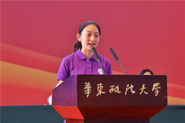 校学生会轮值主席、律师学院王公杰代表老生发言。他希望新生们能够在华政园里唱响一首首青春之歌,“爱国、爱校、爱人”的荣誉感、责任感和使命感都是每一个温暖正义的华政人最深沉的底色。刑事司法学院汪雨橦代表新生表态,作为华政学子,将时刻准备着,把伟大的祖国当作最好的圆梦舞台,让梦想在奉献祖国、服务人民中升华,让青春在奋斗逐梦中闪光。