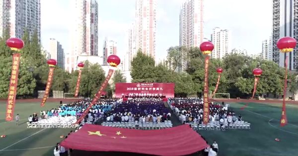 最后,全体师生集体合唱《我和我的祖国》,开学典礼在悠扬的歌声中闭幕。开学典礼后,研究生教育院为2019级研究生新生进行了入学教育。