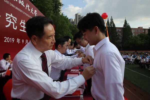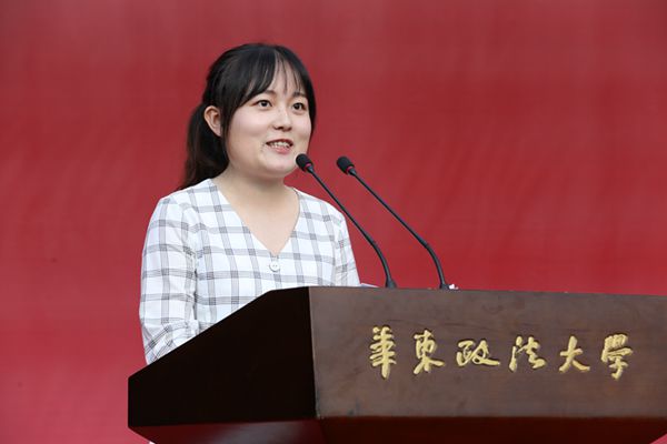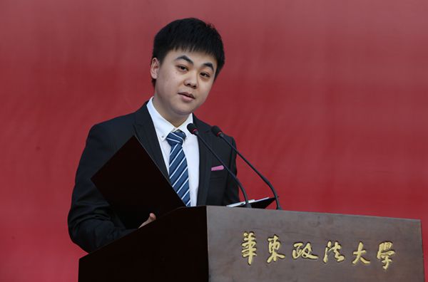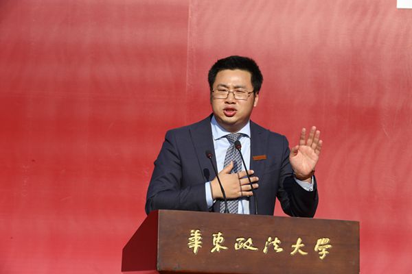 典礼在庄严肃穆的升旗仪式中拉开序幕。校研究生会主席程东林,研究生新生代表陈倚天,研究生导师代表、法律学院副教授吴一鸣,校友代表、上海市律协青年工作委员会副主任、上海博和律所执行主任王思维先后发言。