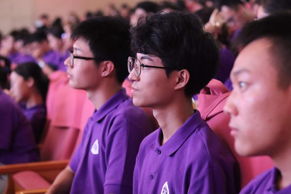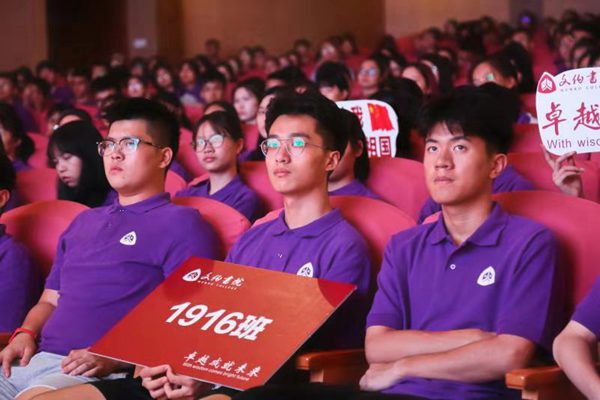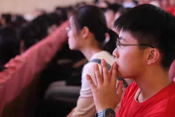 叶青为在座学生提出“开学三问”——“四年后,我会成为怎样的我?四年中,我该做些什么?又该如何做到?”希望学生给自己一个愿望,以积极的心态“扣好第一粒扣子”。四年后,给自己一份喜悦,给家庭一个惊喜,给学校一份荣光。