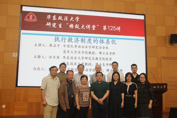 9月20日晚上,我校“研究生格致大讲堂”第125讲在长宁校区交谊楼举行,中国民事诉讼法学研究会会长、清华大学法学院教授、博士生导师张卫平应邀作“执行救济制度的体系化”讲座。讲座由我校研究生教育院院长洪冬英教授主持,北京师范大学法学院博士生导师熊跃敏教授和中国民事诉讼法学研究会副会长、广州大学法学院博士生导师陈刚教授与谈,原浦东新区人民法院专委孔海飞,华东政法大学学报编辑宫雪,我校诉讼法学科邵军、邓继好、谢文哲、张大海和刘东老师出席讲座。