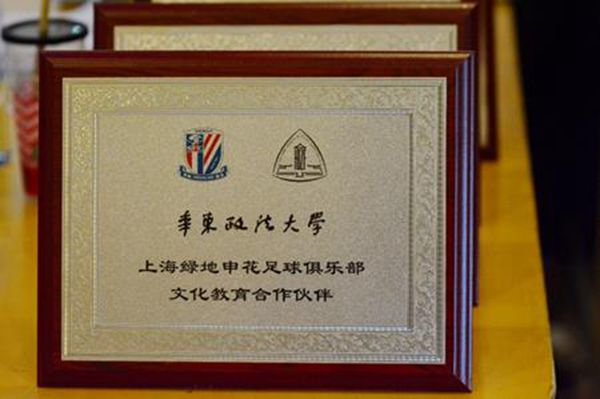 金其荣和朱骏炜作为双方代表正式签约,周立志和吴晓晖互赠比赛球衣与纪念品。双方互赠的“华东政法大学”球衣颇具寓意,12号代表华东政法大学作为绿地申花球队第12人,必将全力支持俱乐部梯队球员文化教育、足球产业相关法律法规研究等方面工作。