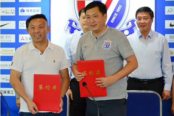9月27日下午,我校与上海绿地申花足球俱乐部合作共建签约仪式在绿地申花康桥训练基地新闻发布厅举行。上海绿地申花足球俱乐部董事长吴晓晖、常务副总经理朱骏炜,我校副校长周立志、体育部主任金其荣、学生处副处长谷向荣、社会协同合作处副处长王美丽等一行以及上海绿地申花足球队梯队全体教练员、运动员出席仪式。