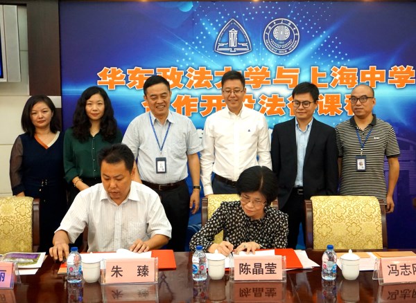 华东政法大学与上海中学校领导在两校合作协议上签约