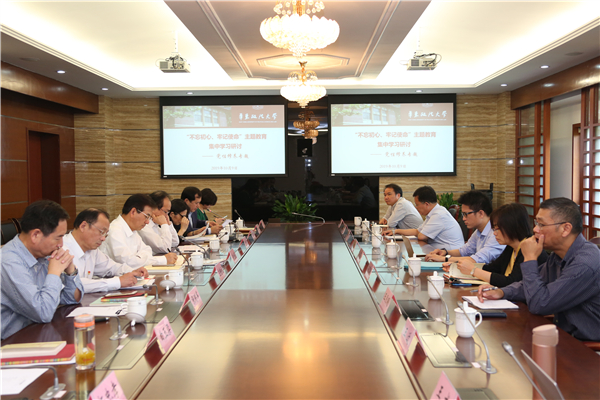 郭为禄详细分享了学习体会,围绕习近平总书记在纪念红军长征胜利80周年大会上的重要讲话,在做焦裕禄式的县委书记、扶贫工作、纪念老一辈革命家和先进典型等方面重要论述作了详细展开。他提出,一是要向模范学、向榜样学。二是心中有党、心中有民,建议各部门要将主题教育同实际工作相结合,将调查研究和解决问题相结合,推进各项工作的改革创新。三是校党委领导班子、党组成员要做主题教育的学习模范,充分发挥示范作用,在条线上下功夫。