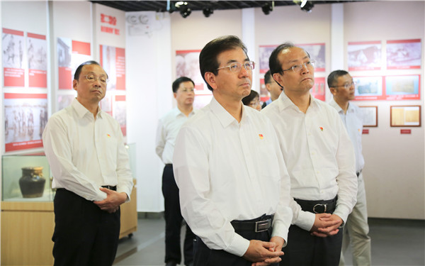 当讲解员提到,在中国共产党哺育下成长起来的共产主义战士顾正红为了保护工友的合法权利,与压迫中国工人的日本资本家及其爪牙作斗争,惨遭日方狠击四枪,身体多处负伤,牺牲时年仅20岁时,参观者无不动容。郭为禄感慨,顾正红负伤后,喊着“工友们,团结起来”,坚持“不去东洋人的医院”,以小我的牺牲唤起广大同胞的反帝爱国行动,这种行为深刻地体现了他“血性”和“顶天立地的正气”,做一名中国人就要有血性,没有血性和骨气不可能有党性。党委副书记、校长叶青说,回顾顾正红成为共产党员的短暂一生,他用生命履行了中国共产党是工人阶级先锋队的誓言。