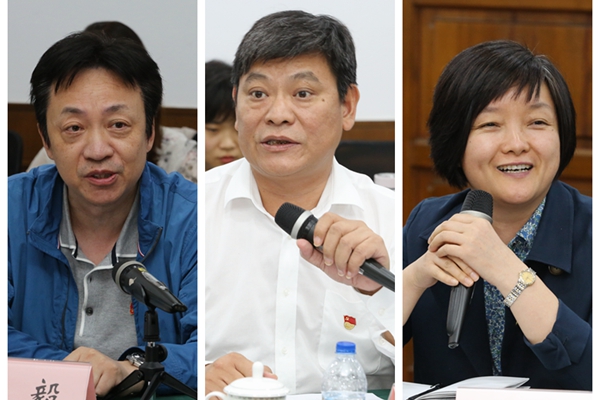 经济法学院党委书记张毅、政管学院党委书记曹都国、法律学院党委书记欧亚就学院开展主题教育情况进行了汇报交流。