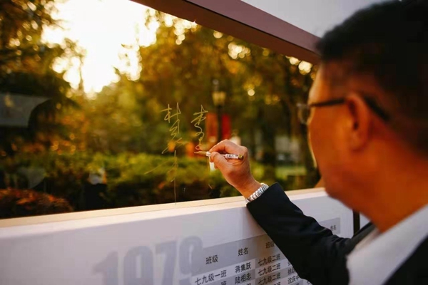 当天,校友还参观了“奋起”79级复校档案展,举行了“再一次走进课堂”、79级联谊等活动。