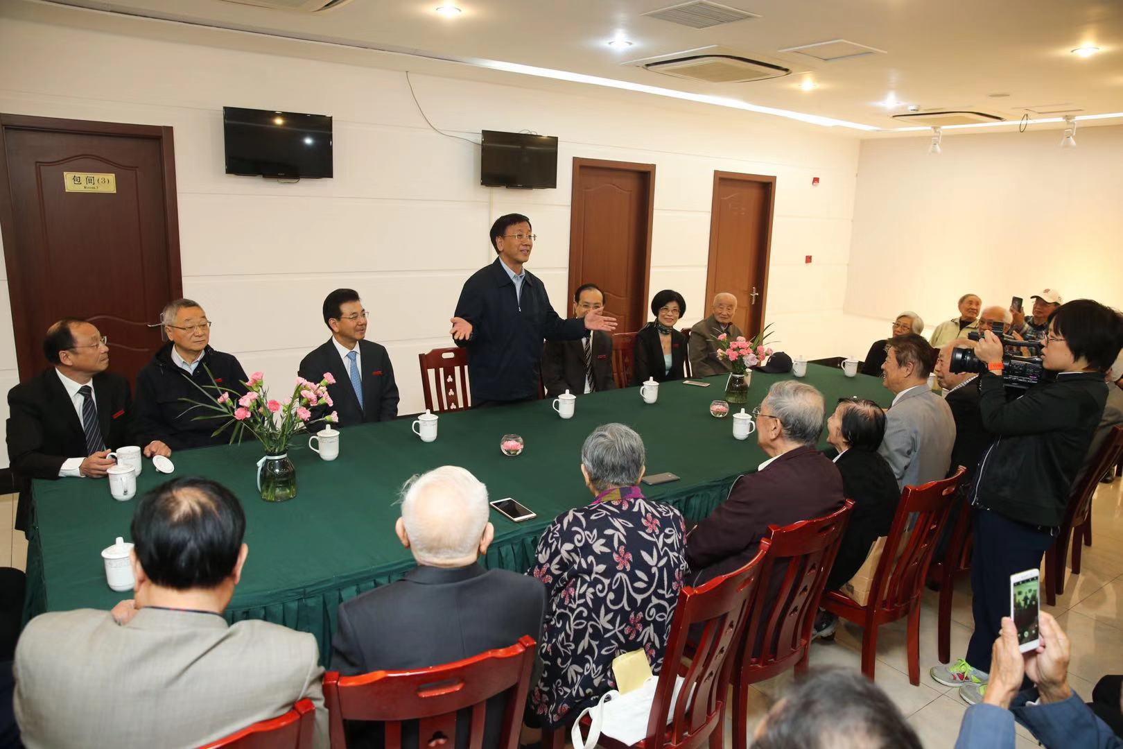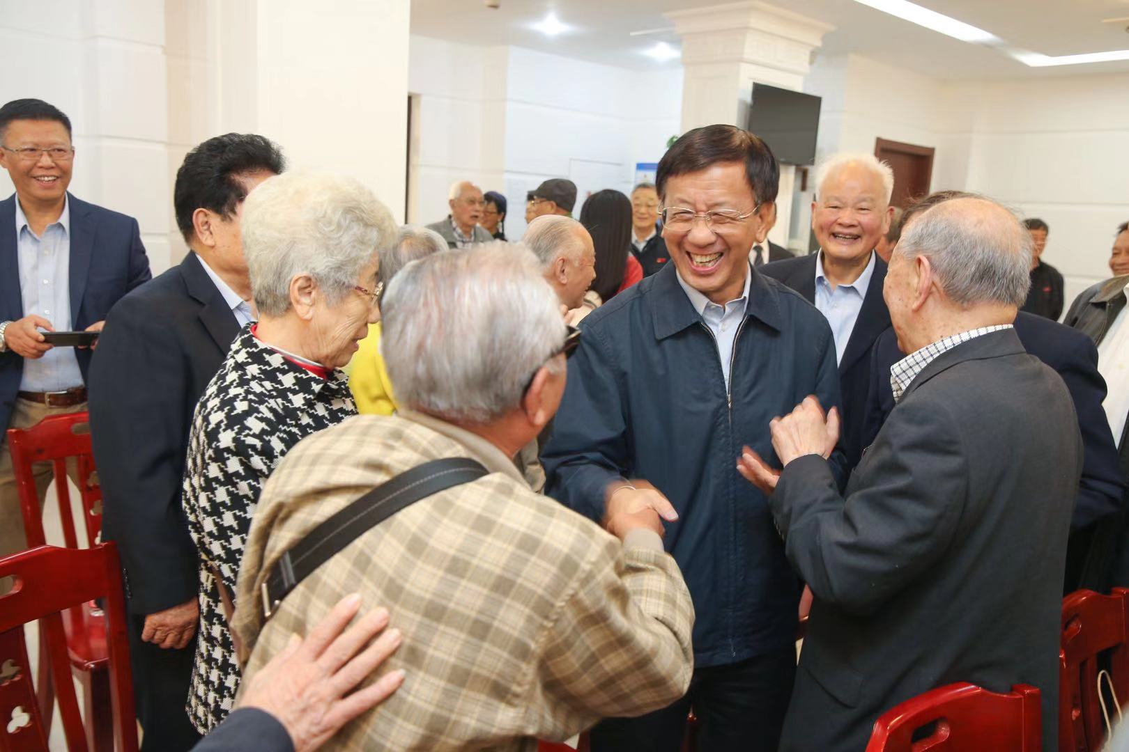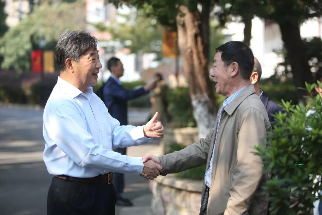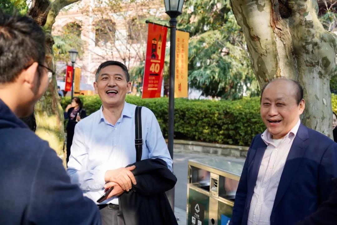 与中国法治建设和法治教育同呼吸共命运,40年前在改革开放春风吹拂下,华东政法学院复校招生。四十载,励精图治春华秋实,光阴荏苒勇猛精进,自强不息、践行使命,离不开一代代华政人的求真至善、务实担当、正义温暖。10月19日,华政复校招生的首批1979级学生重回母校,追忆青春美好岁月,对话2019级学生,畅谈共和国法治未来。一早,1979级校友曹建明首先拜访了1979级任课老师、年级办老师和部分老领导,与他们亲切交谈,并会见了校党委书记郭为禄,党委副书记、校长叶青,党委副书记、纪委书记应培礼,副校长陈晶莹,原党委书记杜志淳和原副校长林燕萍等一行。