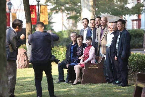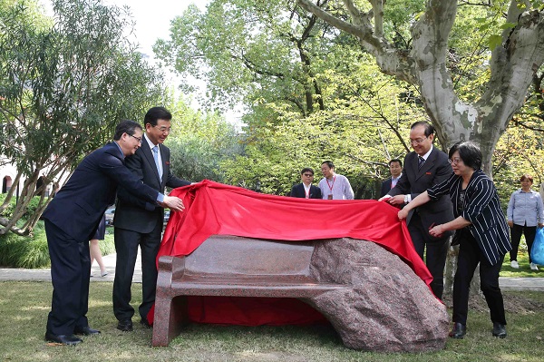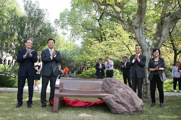 会后,在79级校友和校领导共同见证下,“我们的家——1979级校友纪念石凳落成典礼”在图书馆前的芳草地上举行。六个班级,六把石椅,代表着前辈对华政一代代学子能够坐得住板凳、静心学习的期望。校领导为石凳揭幕,叶青校长寄语新一代华政人,“好好学习,天天向上”。六把石椅也为刚刚入选全国重点保护文物单位的华东政法大学长宁校区圣约翰大学近代建筑,增添了一道风景线。