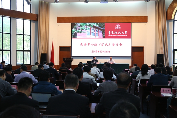 10月16日上午,按照学校党委“不忘初心、牢记使命”主题教育的工作安排,党委中心组(扩大)学习会在松江校区召开。校党委领导班子、校党委委员、纪委委员、学校中层干部出席会议。会议由校党委副书记、纪委书记应培礼主持。