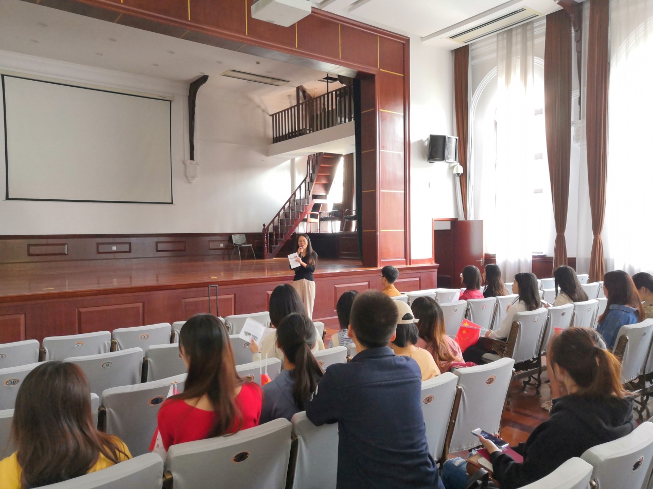 学生在支部书记的带领下前往40号楼小礼堂,这是近100年前孙中山在此演讲过的地方。侯晓芮同学负责讲解。沉浸在过去故事中的学生被孙中山先生的风采所折服。今日之华政,作为法学教育的东方明珠,一直践行着孙先生“民主国家,教育为本”的教育理念,贯彻着“立德树人”的办学目标。