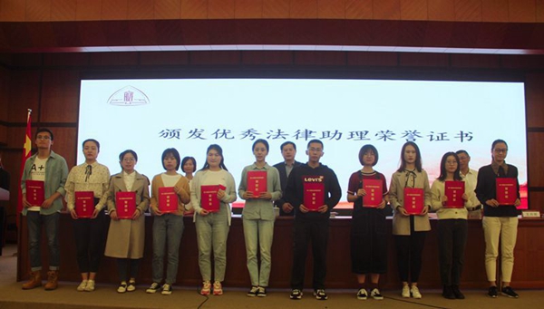 法律硕士教育中心刘阳和律师学院周思伟分别作为研究生和本科生优秀法律助理代表上台发言,分享了法律助理项目实习感悟和收获。
